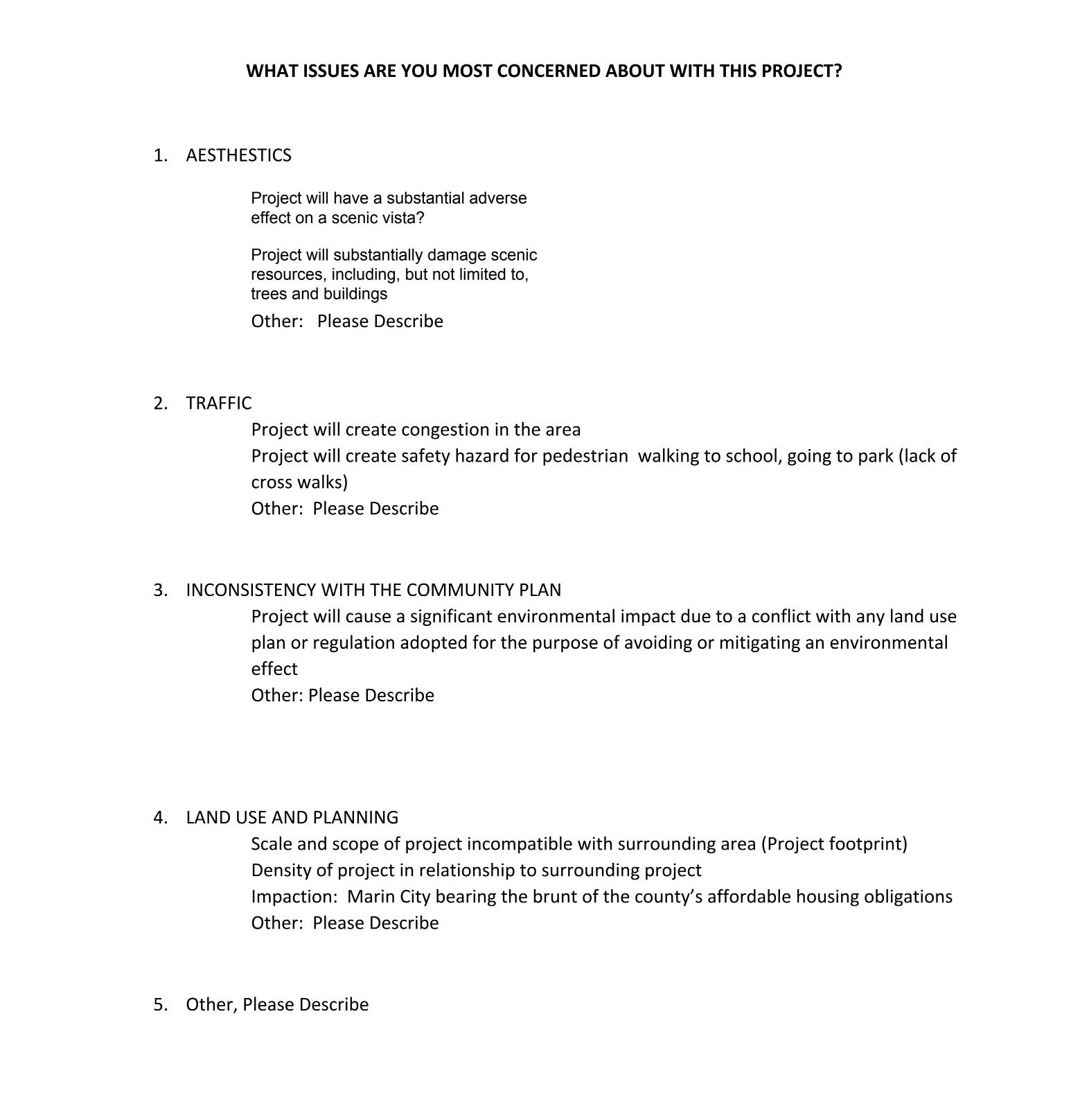 Marin City occupies only .1% of the county’s land area but already holds 44% of the total Publicly Assisted Multi-Family Rental Units and 41% of the Affordable Housing Units that exist in Marin County. The development is a perversion of the SB35 legislation that should not be applied to our community.
